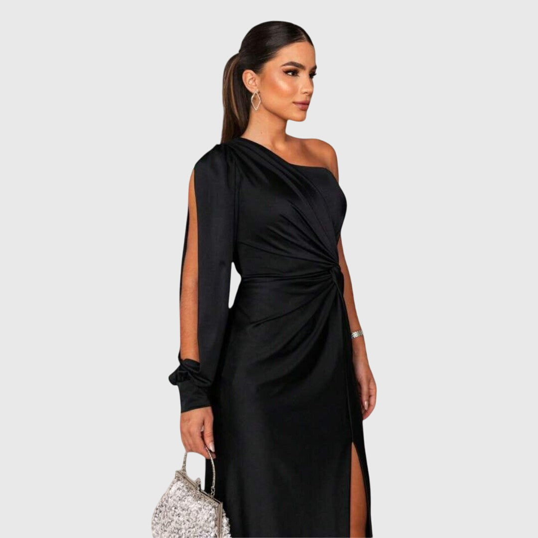 הגזרה הייחודית עם יד אחת מעניקה לך סילואט אלגנטי ומדגישה את הנשיות שלך. כל העיניים יהיו עלייך!